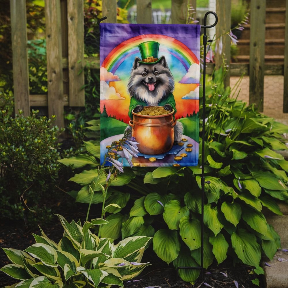 Garden Flag featuring breed specific Keeshond artwork. Celebrate St Patrick's Day with this St Patrick's Day Garden Flag. Enhance the beauty of your garden, patio, or yard with Caroline's Treasures Decorative Garden Flag, proudly made in the USA. Crafted from two pieces of thick, double-sided polyester fabric, this 2-ply garden flag is designed to withstand various weather conditions, making it water-resistant and weatherproof. Featuring correctly readable words on both sides, this garden flag offers a delightful visual experience from any angle. With its heavier weight, it stands out among other garden flags, ensuring stability and durability even in wind, rain, and snow. Measuring approximately 11 1/4 inches by 15 1/2 inches, this flag allows you to personalize your outdoor decor. It comes with a 1 1/2-inch sleeve sewn in, allowing easy attachment to any standard garden flag stand or garden size porch hanger (sold separately). Make a statement in your outdoor space with Caroline's Treasures Decorative Garden Flag, a vibrant and high-quality flag that adds color and personality to your surroundings. Proudly made in the USA, it's a symbol of quality craftsmanship and attention to detail.