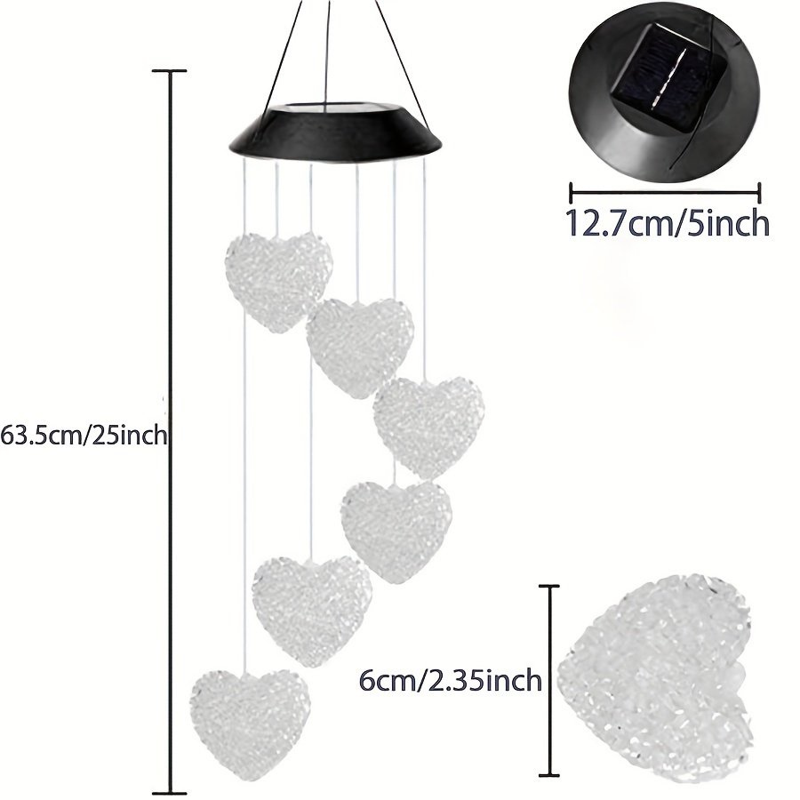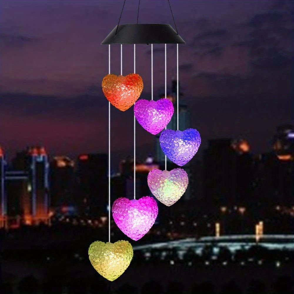 Home > 1pc Color Changing LED Solar Power Lamp Heart Wind Chimes Garden Decoration Yard Waterproof LED Light Lighting Hanging Decor (Heart)