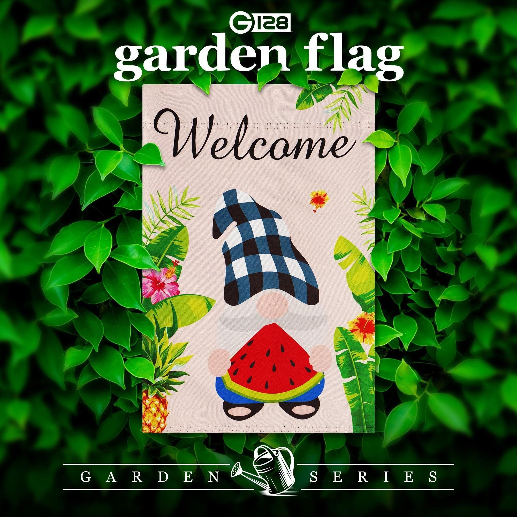 Garden Flag Welcome Gnome with Watermelon Slice 12x18 inch Blockout Fabric Double Sided Garden Flag Welcome Gnome with Watermelon Slice 12x18 inch Blockout Fabric Double Sided Garden Flag Welcome Gnome with Watermelon Slice 12x18 inch Blockout Fabric Double Sided
