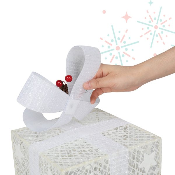 Home > 3pcs Square ABS Plastic Rack Garden Festive Decoration LED60 Light Warm White Light Cotton Thread Powder Gift Box