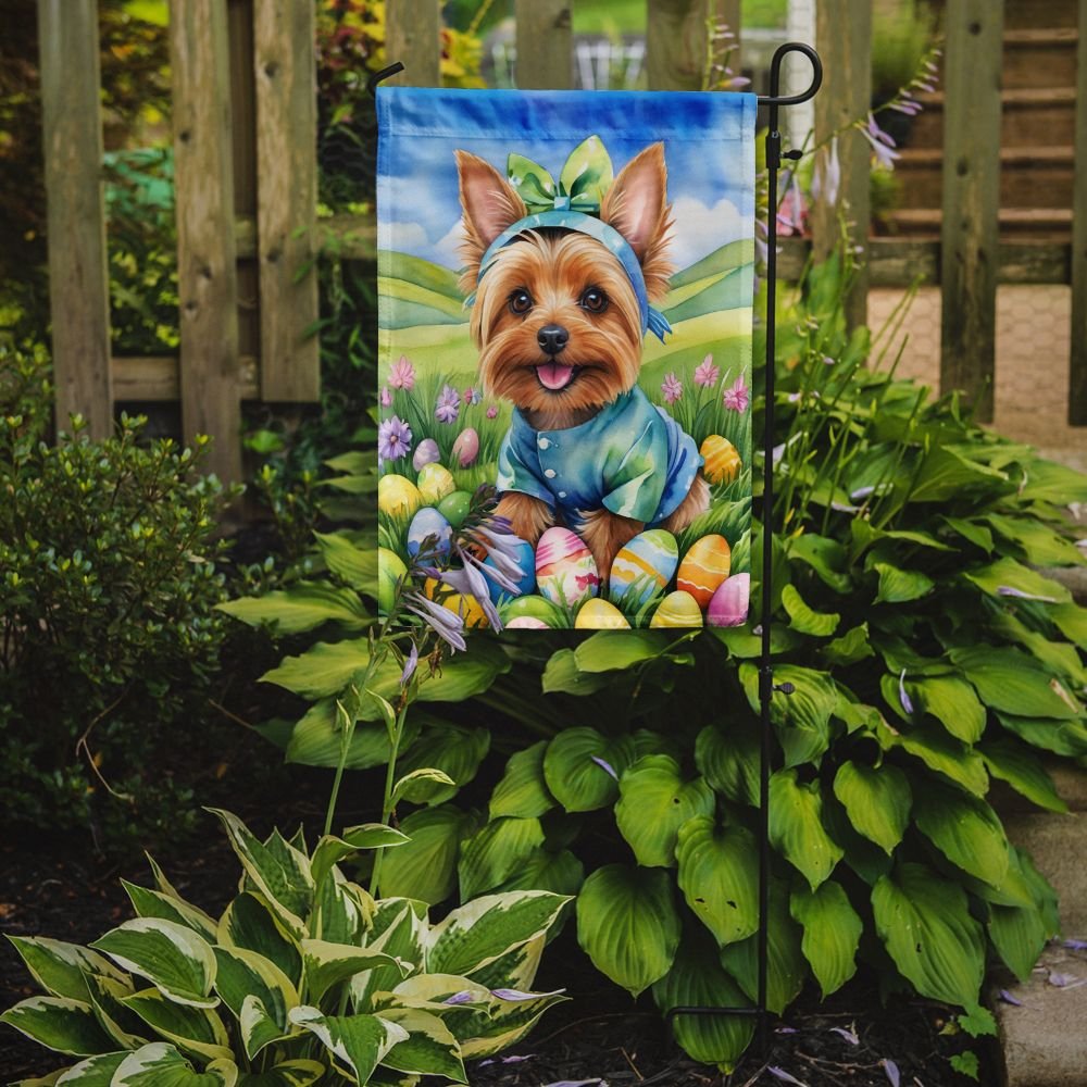Garden Flag featuring breed specific Silky Terrier artwork. Celebrate Easter with this Easter Garden Flag. Enhance the beauty of your garden, patio, or yard with Caroline's Treasures Decorative Garden Flag, proudly made in the USA. Crafted from two pieces of thick, double-sided polyester fabric, this 2-ply garden flag is designed to withstand various weather conditions, making it water-resistant and weatherproof. Featuring correctly readable words on both sides, this garden flag offers a delightful visual experience from any angle. With its heavier weight, it stands out among other garden flags, ensuring stability and durability even in wind, rain, and snow. Measuring approximately 11 1/4 inches by 15 1/2 inches, this flag allows you to personalize your outdoor decor. It comes with a 1 1/2-inch sleeve sewn in, allowing easy attachment to any standard garden flag stand or garden size porch hanger (sold separately). Make a statement in your outdoor space with Caroline's Treasures Decorative Garden Flag, a vibrant and high-quality flag that adds color and personality to your surroundings. Proudly made in the USA, it's a symbol of quality craftsmanship and attention to detail.