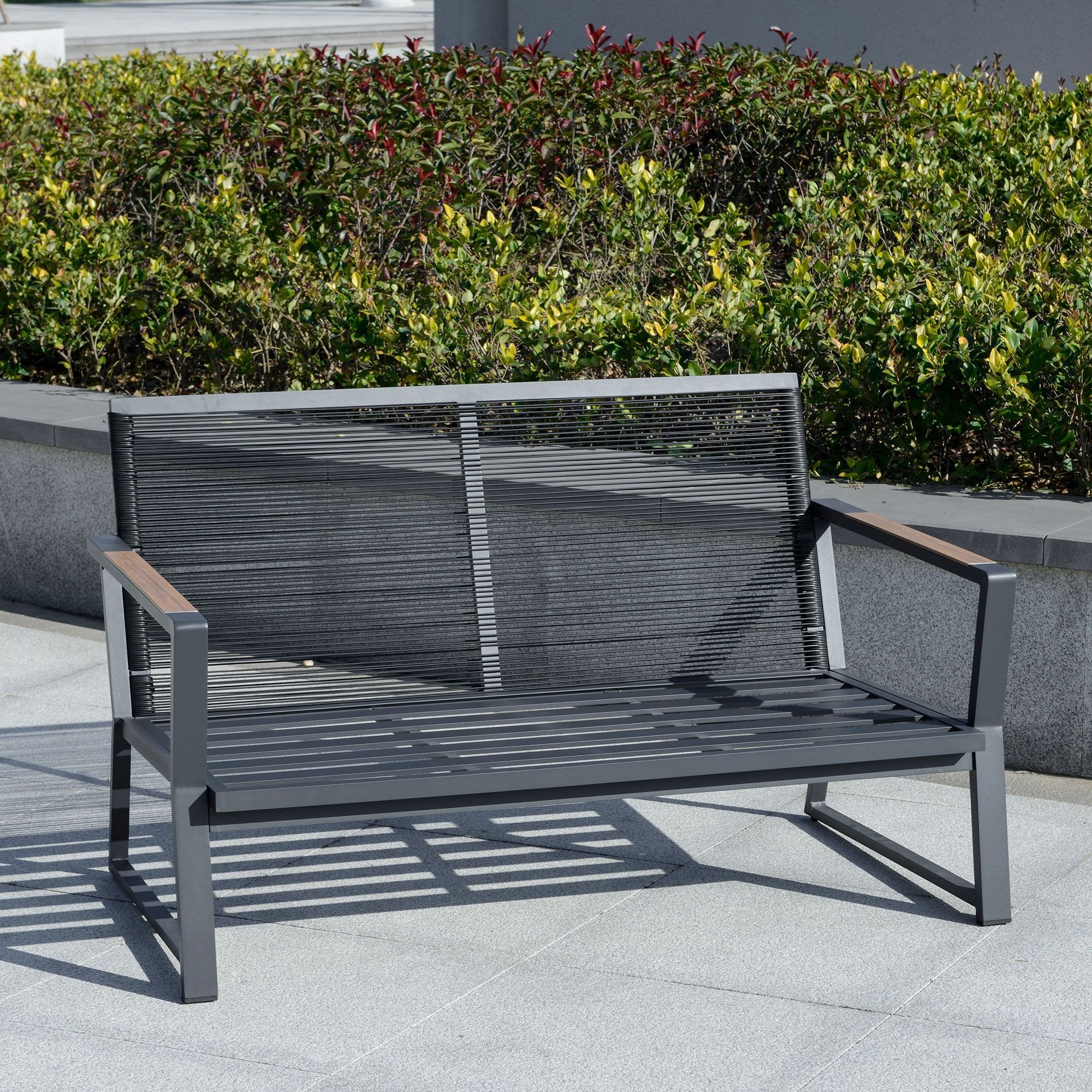 4 Piece Patio Furniture Set, Aluminum Conversation Set, Outdoor Garden Sofa Set with Armchairs, Loveseat, Center Coffee Table and Cushions, Dark Grey 4 Piece Patio Furniture Set, Aluminum Conversation Set, Outdoor Garden Sofa Set with Armchairs, Loveseat, Center Coffee Table and Cushions, Dark Grey 4 Piece Patio Furniture Set, Aluminum Conversation Set, Outdoor Garden Sofa Set with Armchairs, Loveseat, Center Coffee Table and Cushions, Dark Grey