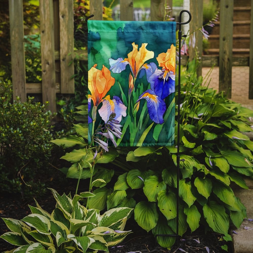 Garden Flag featuring breed specific Tennessee Iris artwork. Enhance the beauty of your garden, patio, or yard with Caroline's Treasures Decorative Garden Flag, proudly made in the USA. Crafted from two pieces of thick, double-sided polyester fabric, this 2-ply garden flag is designed to withstand various weather conditions, making it water-resistant and weatherproof. Featuring correctly readable words on both sides, this garden flag offers a delightful visual experience from any angle. With its heavier weight, it stands out among other garden flags, ensuring stability and durability even in wind, rain, and snow. Measuring approximately 11 1/4 inches by 15 1/2 inches, this flag allows you to personalize your outdoor decor. It comes with a 1 1/2-inch sleeve sewn in, allowing easy attachment to any standard garden flag stand or garden size porch hanger (sold separately). Make a statement in your outdoor space with Caroline's Treasures Decorative Garden Flag, a vibrant and high-quality flag that adds color and personality to your surroundings. Proudly made in the USA, it's a symbol of quality craftsmanship and attention to detail.